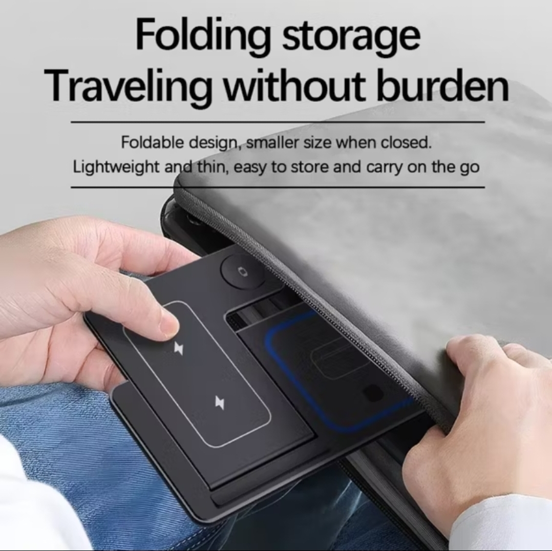 Além da tecnologia, o design minimalista do Carregador 3 em 1 deixa qualquer ambiente mais elegante e organizado, eliminando a bagunça dos cabos.